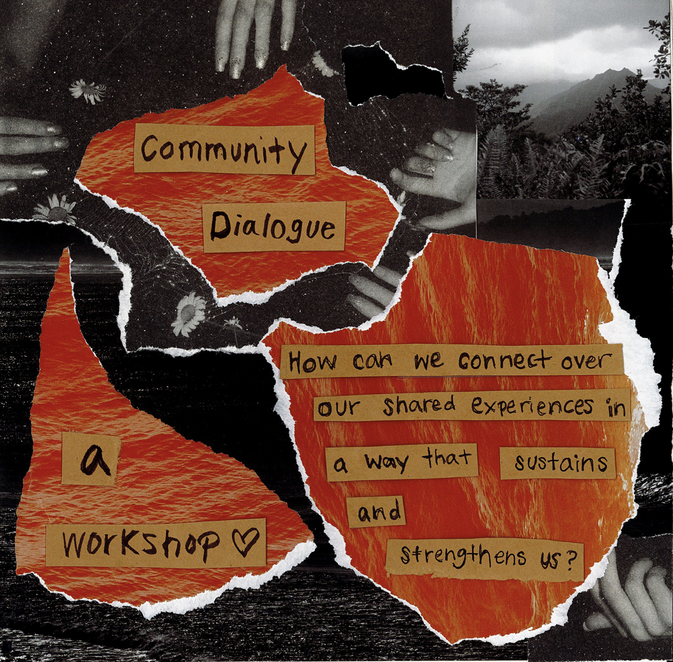 Of the many experiences that connect us, it is often the more difficult topics–grief, homesickness, difference–that hold the greatest potential for connection, yet are the most difficult to navigate alone. This workshop is aimed towards groups who seek a supportive and structured space to explore these difficult topics. We start the process by co-creating an intention, topic, and design for the workshop; the group then partakes in a customized workshop with the aim of fostering peer-learning and perspective shifts; the final step is harvesting key learnings and identifying ways to sustain change and connection amongst group members. Through collaborative and creative methods, group members are able to explore difficult topics that are typically not given proper space, transform experiences into shared wisdom and resources, and increase resilience through connecting with community.